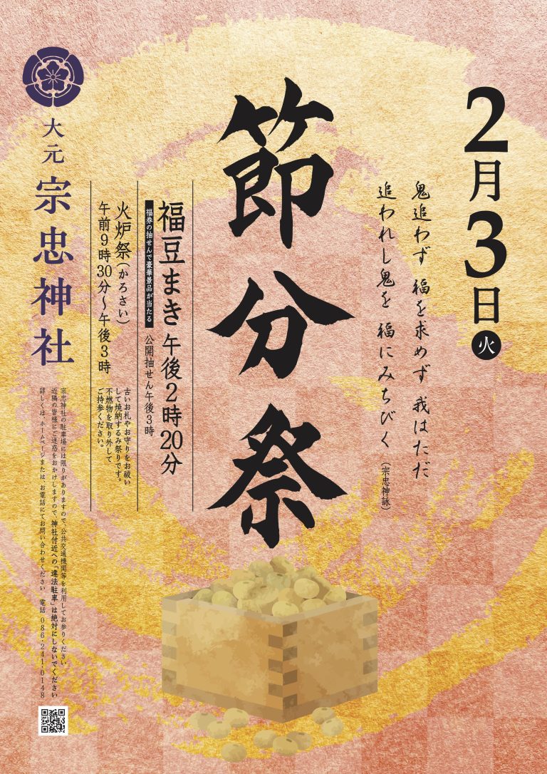 午後1時30分 節分祭祭典(拝殿) 2時20分頃~ 福豆まき(武道館前特設ステージ) 3時頃~ […] -