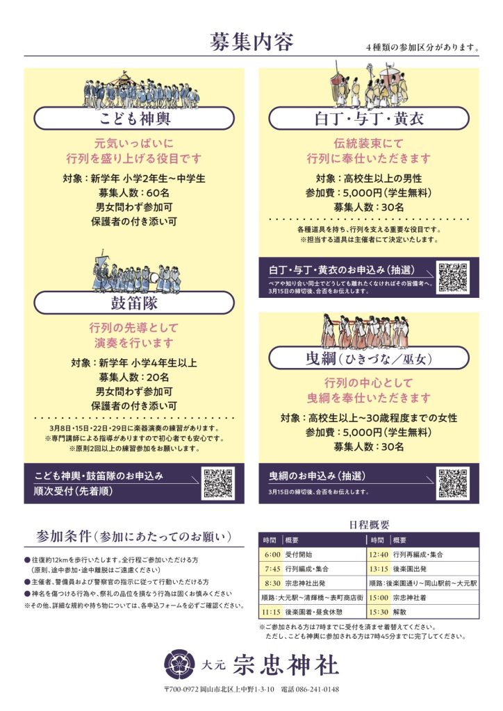 平安装束に身を包み、岡山市内を巡行する歴史ある行列に参加してみませんか。